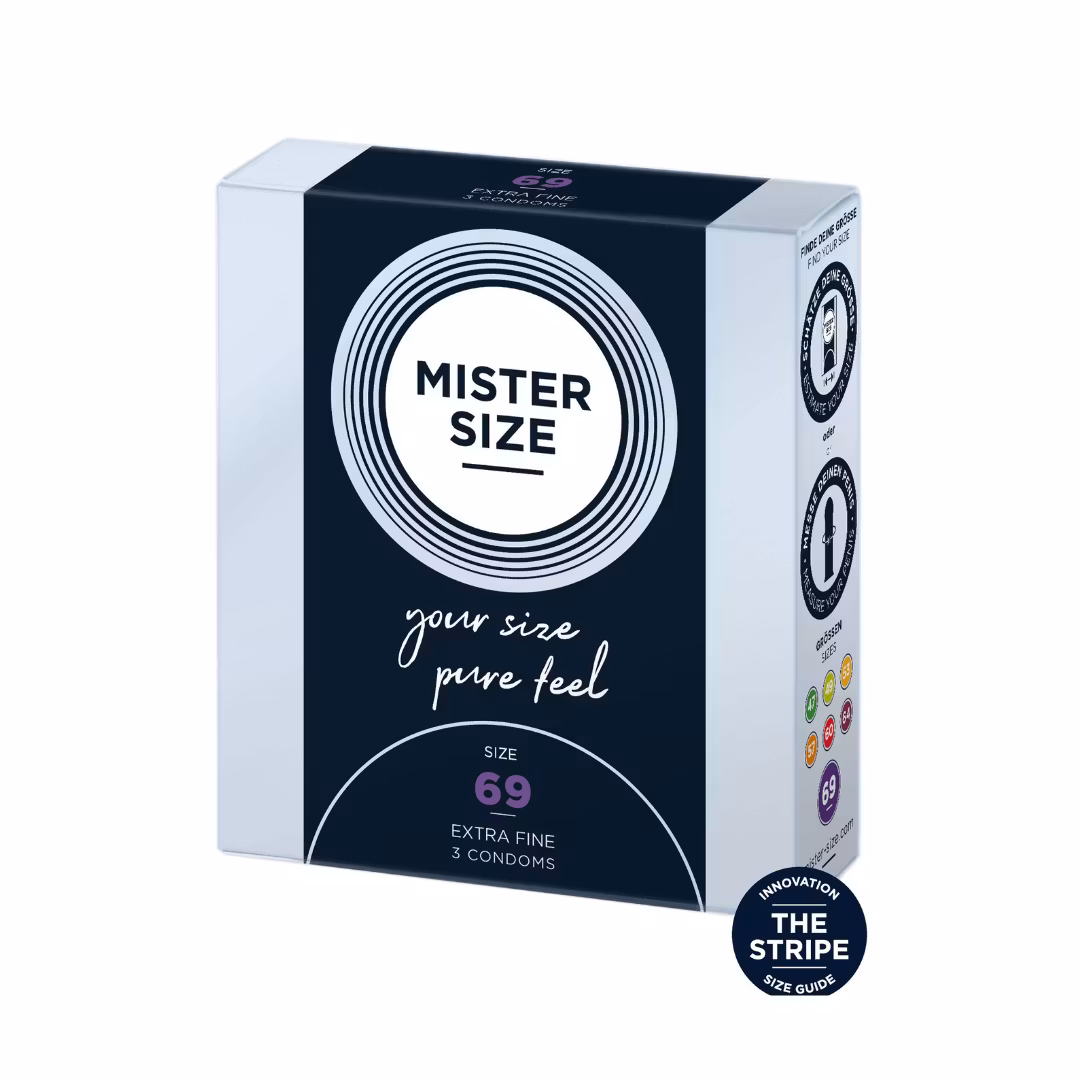 MISTER SIZE 69mm Condoms 3pcs 49 kr Lägg i korgen Dela Information MISTER SIZE - pure feel 69mm (3pieces), the condom for the careful heavyweight. Ultra-thin (0.06 mm) - for pure intensity.Total length:22 cmMaterial:Natural rubber latex