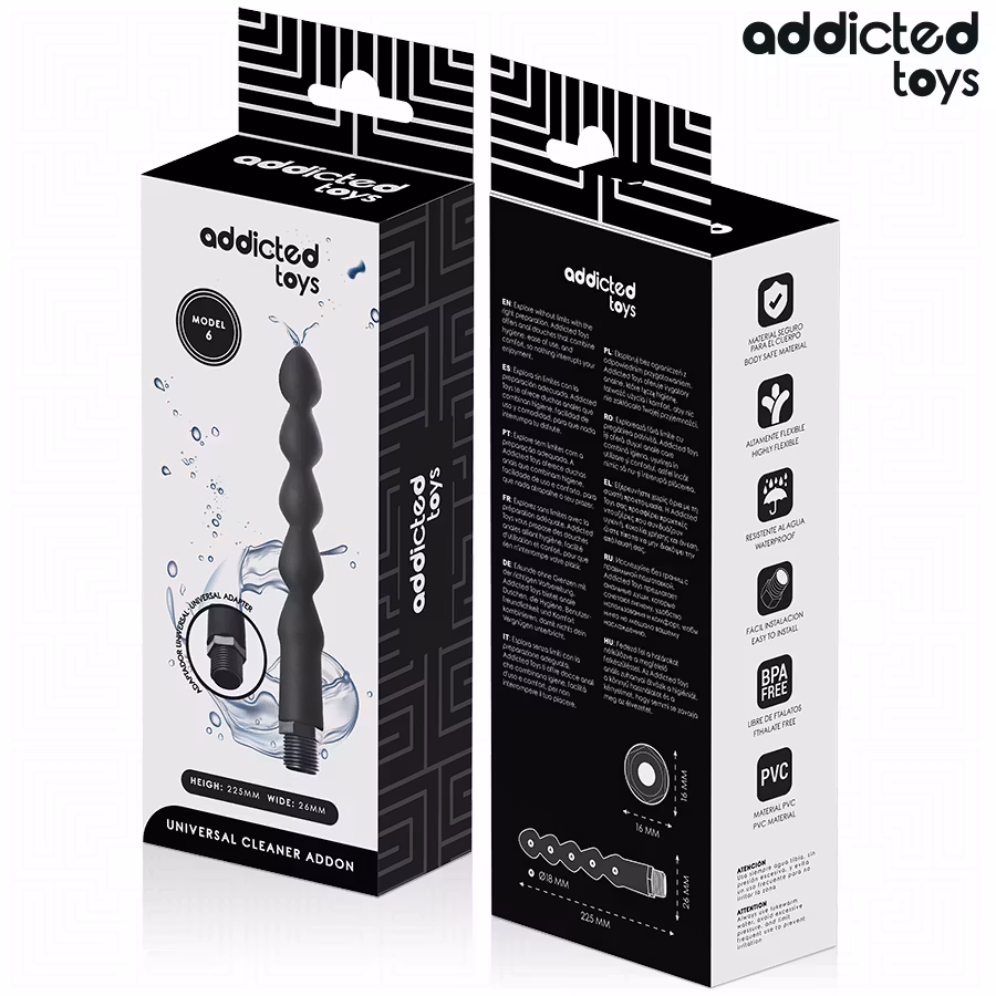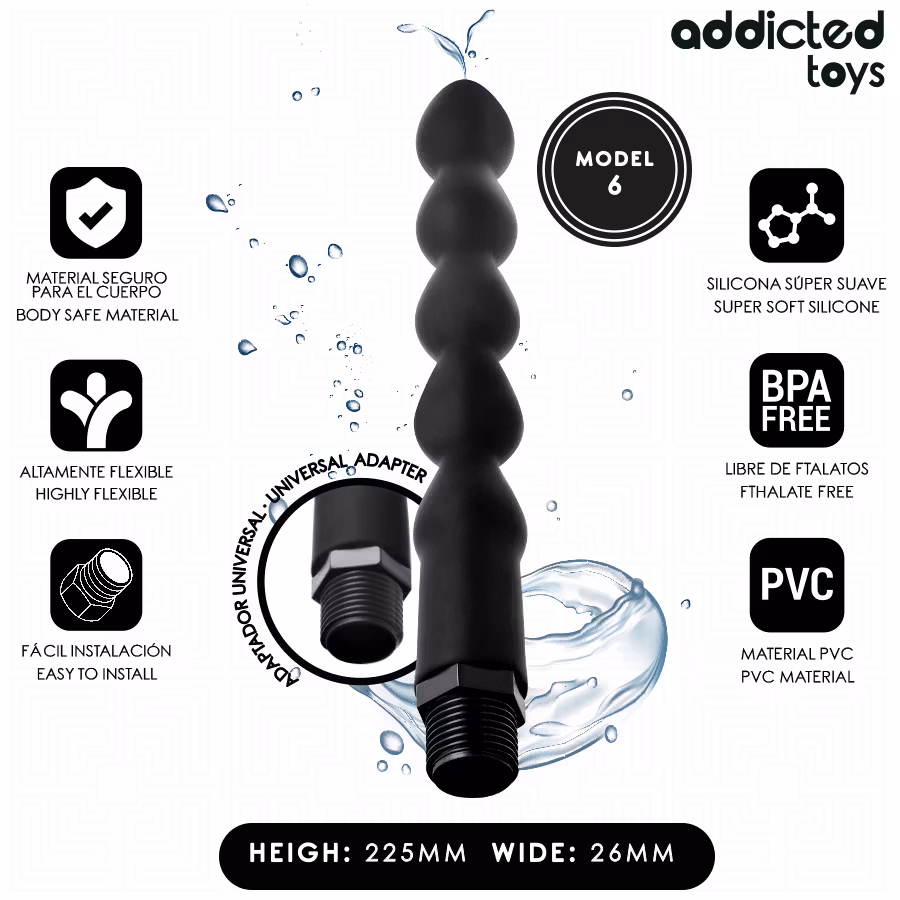 Explore without limits with the right preparation. Intimate hygiene is key to enjoying your anal experiences to the fullest, and with the Addicted Toys anal cleaner, you'll get a deep, safe, and hassle-free clean. This Model 6, part of a range of 6 different designs, is designed to be comfortable, soft, and effective as part of your daily or pre-play intimate routine. Made with premium materials like flexible PVC and super-soft silicone, this accessory is completely body-safe and phthalate-free, meeting high hygiene standards. Thanks to its universal adapter, it is compatible with most shower systems, making it easy to install in seconds and ensuring practical, hassle-free use.