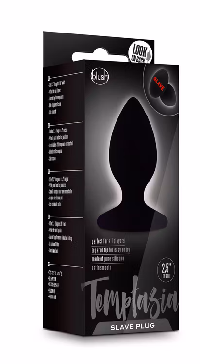 Temptasia - Slave plug 99 kr Produkten finns för tillfället inte i lager. Dela Information Tillverkad i lent, hygieniskt silikon. Total längd: ca 6,5 cm Penetrerande längd: 5 cm Diameter: 3,5 cm