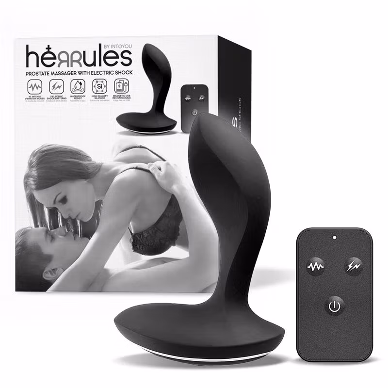 Herrules has 10 intense vibration functions and 5 electro shock functions, which you can control from the toy itself or from the wireless remote control. Keep in mind that for the electro shock function to work, both poles must be touching the skin.It has an ergonomic shape designed for anal pleasure, a rounded and bulbous tip, a narrow neck and a wide base for extra comfort and security.