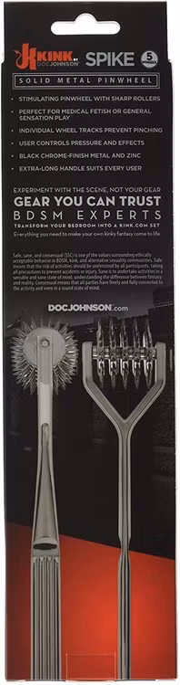 -Stimulating Pinwheel with three or five rollers. -Perfect for medical fetish or general sensation play. -User controls pressure and effects. -Black chrome-finish metal. -Individual wheel tracks prevent pinching. -Extra long handle suits every usher.