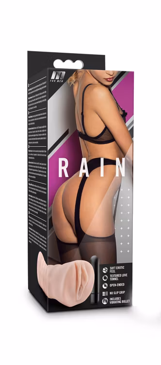 Rain är en naturtrogen masturbator med en vibrerande bullet. Bulleten har en hastighet, den drivs av ett AAA-batteri (ingår ej) och är vattenskyddad så den kan följa med i duschen. Masturbatorn är öppen i båda ändarna, vilket gör att den passar alla storlekar och är lätt att rengöra. Tunneln har struktur för att ge en realistisk känsla.
