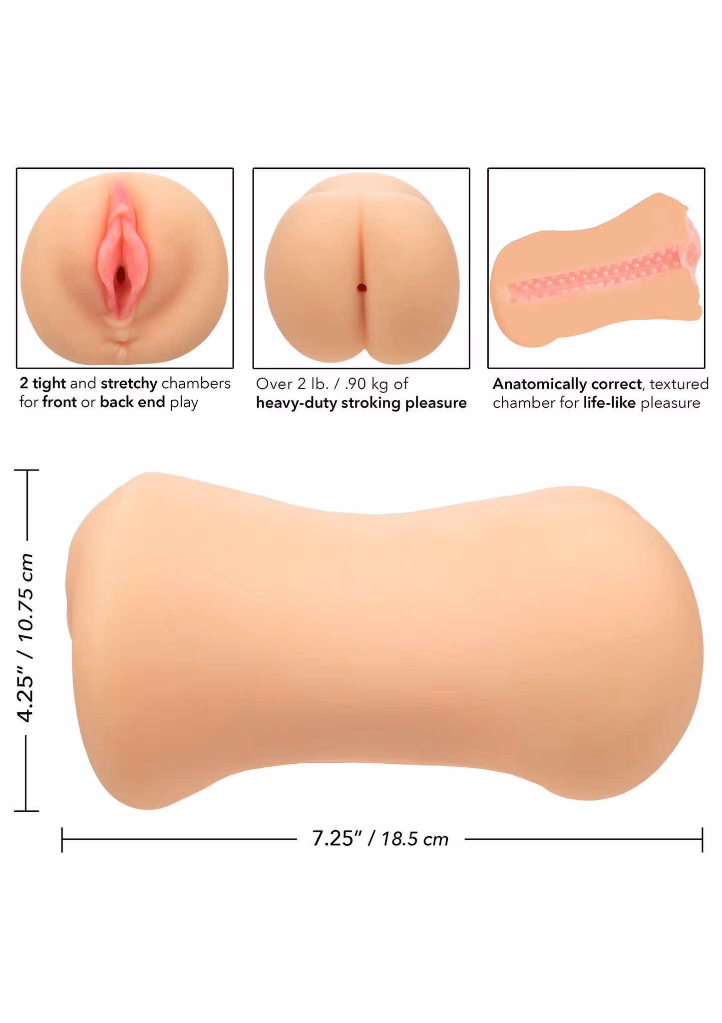 Over 2 lbs./0.9 kg of heavy-duty stroking pleasure