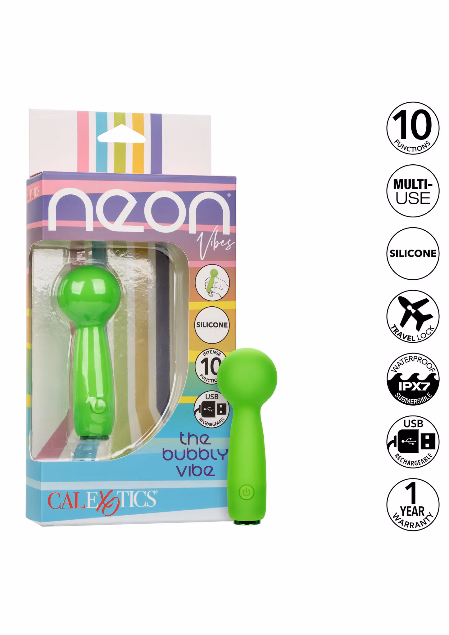 Discover the joy of touch with Neon Vibes The Bubbly Vibe, a mini massager as delightful as it is intense. Perfect for foreplay enthusiasts, it's a compact yet powerful companion for intimate encounters or full-body exploration. With 10 intense functions of vibration, pulsation, and escalation, tailor your experience to your mood. Crafted from body-safe Silicone, it's 100% waterproof (IPX7), perfect for adventurous play. The memory chip resumes on the last function used. Featuring a security travel lock, USB rechargeability, it offers 45 minutes of high-speed intensity or 90 minutes on a lower setting after just 2 hours of charging. Embark on exploration and fun with Neon Vibes The Bubbly Vibe.