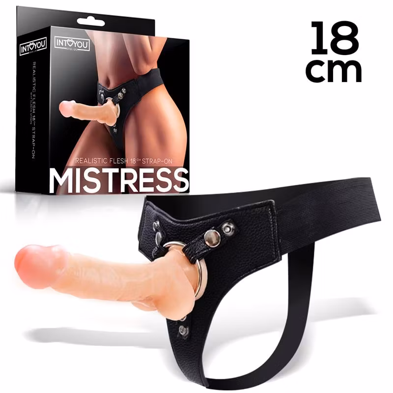 Created for the pleasure of the couple, the Mistress harness comes into your life. This harness has elastic straps designed to conform to your curves and be comfortable and safe. On the front you will find a removable O-shaped ring with which to use the included dildo or the one you like best.