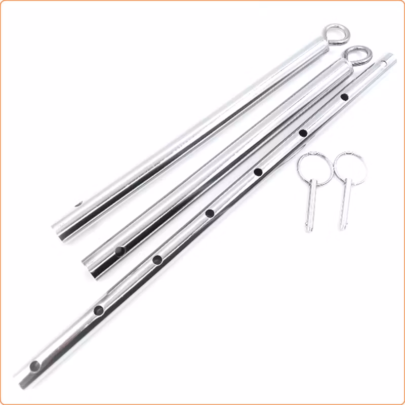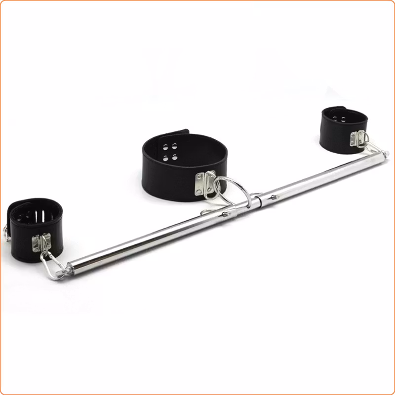 Keep your submissive restrained and spread as far as you like. This adjustable steel spreader bar restraint accessory has eyebolts securely attached to each end. Attach wrist or ankle cuffs to this metal bondage spreader bar and keep your slave spread.