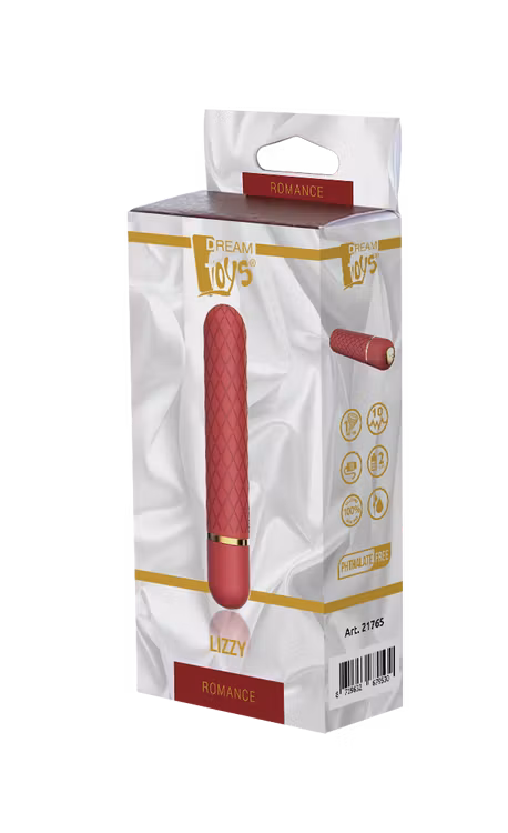 Lizzy har diamantformat, präglat mönster som gör den lätt att hålla i och en rundad topp som gör att passar perfekt för stimulans av alla erogena zoner, speciellt klitoris. Den erbjuder tre stadiga hastigheter och sju olika vibrationsprogram, du byter lätt mellan programmen med en liten knapp i botten av vibratorn.