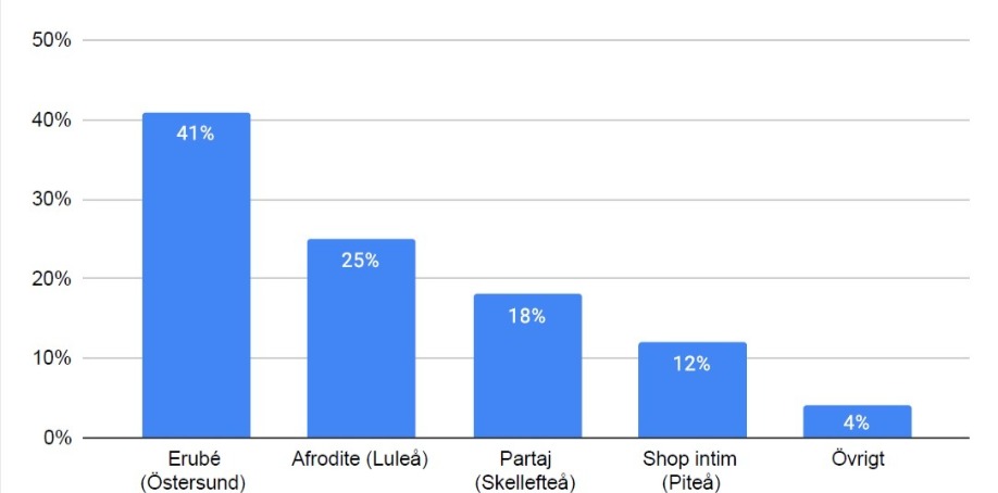 “Att jag väljer Erubé är för mig ganska självklart. Bra personal, blandat och brett utbud samt framförallt: diskret och anonym butik så att man kan smyga in. Har bott i Piteå och nu i Östersund. Gillar verkligen Erubé bättre än Shop Intim, även om jag inte ska klaga på dem heller!”